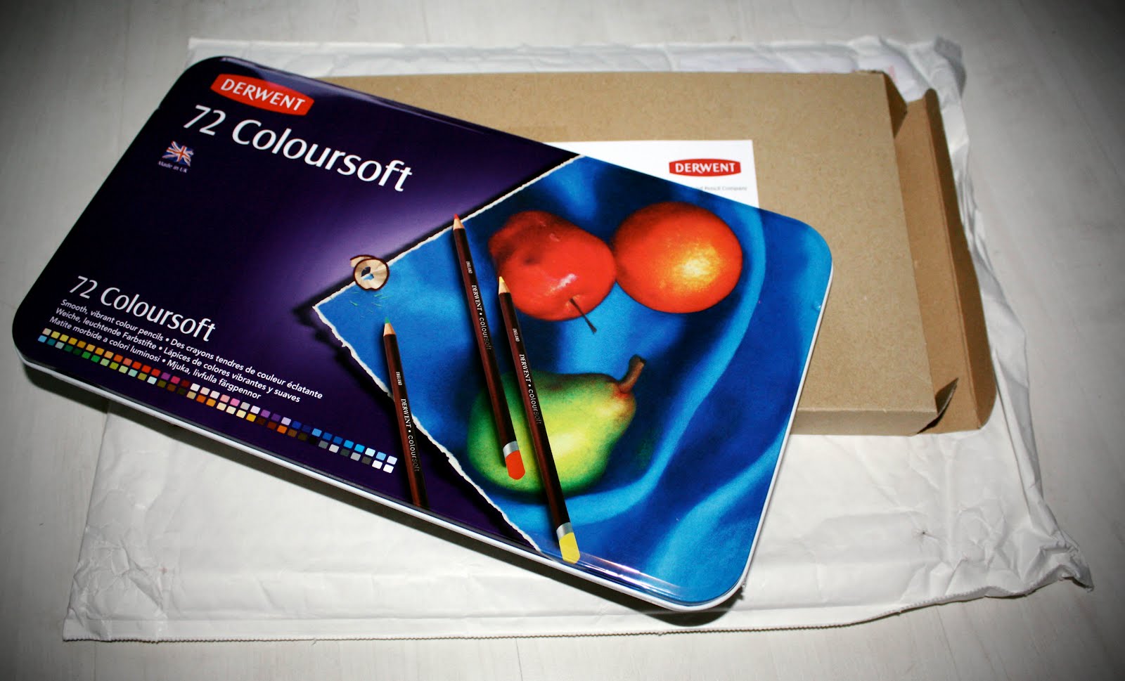 Ohhhh errrr, look what the postman just gave me!! Thanks very much to Derwent for this lovely brand spanking new 72 tin of Colorsoft pencils. I'll be trying these out today for sure..I'll let you know how I get on <3